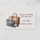Imaginez un carte de visite moderne et chic, adapté à différents types de sacs à main, de sacs à main ou d'accessoires. Envisagez une étagère d'exposition de magasin portant une ligne de sacs à main de mode, ces derniers sont des sacs fourre-tout en cuir modernes avec un style élégant à côté d'une paire de lunettes de soleil de mode noir. Cette carte peut être personnalisée avec tous vos détails d'affaires. Personnalisation supplémentaire au dos de la carte.