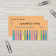 Cartes de visite de créateurs à deux faces pastel orange avec le mignon doodle de stylos à encre colorés. Utilisez le modèle pour les personnaliser avec votre nom, titre, et toutes les informations nécessaires. Ils sont parfaits pour les professeurs substituts d'art, les aides-enseignants, les éducateurs ou les tuteurs. Ils sont également disponibles en turquoise et noir. © ArianeC Illustrations-Tous droits réservés