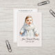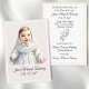 Une carte simple et élégante pour le baptême d'un bébé, avec une douce illustration d'un petit personnage dans sa robe baptismale sur un arrière - plan bleu doux. L'illustration est entièrement personnalisable et peut facilement être remplacée par une photo de votre choix. Ces cartes font de belles faveurs de baptême et de mémoire sincère pour vos invités.