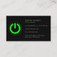 Cool moderne, Noir, Technologie Professionnelle, Carte de visite - avec bouton d'alimentation de lumière verte / Commutateur éteint. Idéal pour Technology Expert, PC Repair Help, Laptop Repairs, Programmeur Informatique, Software / Game / Web Site Developer, Tech Help Consultant, DB Analyst, Administrateur de base de données, App Engineer, IT Project Manager, Pro Gamer, Console Gaming, Video Games Sales / Shop et de nombreux autres professionnels. Vous pouvez modifier le texte en police, couleur, taille et emplacement en cliquant sur le bouton bleu "CUSTOMISER IT". Merci de votre visite.