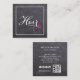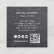 Design moderne et élégant de typographie lettrée à la main en blanc, placé sur un arrière - plan de tableau... avec votre nom à l'avant, et des outils amusants avec une touche de couleur moderne des cheveux. Vos coordonnées, au verso de la carte, comprennent votre adresse e-mail, l'adresse du site Web, les icônes des médias sociaux et votre code QR. Des versions supplémentaires de cette conception sont disponibles sans site web et / ou les médias sociaux ou code QR, pour les professionnels qui ne les utilisent pas. Parfait pour tous les professionnels des cheveux. Ajoutez vos détails en suivant le lien "Personnalisez ce modèle". Vous pouvez télécharger votre propre image de code QR en suivant le même lien. Si vous souhaitez obtenir de l'aide, n'hésitez pas à me contacter via un message ici sur Zazzle, ou par e-mail. susanmingaydesigns@gmail.com