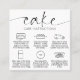 Carte moderne Cake Care avec police de script élégante et des icônes d'instructions de soin de gâteau. Cette fiche d'instructions de transport et d'entreposage de gâteaux en noir et blanc minimal comprend les informations les plus importantes sur les soins ainsi qu'une note de remerciement sur le dos avec espace pour votre logo et les détails de l'entreprise. L'ajout parfait à vos boîtes à gâteaux et à la conception d'emballage de boulangerie.