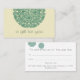 Une carte cadeau pour un cours de yoga gratuit, avec notre design de mandala haut de gamme, mandala vert. Idéal pour un professeur de yoga, un spa ou une autre profession holistique. Design fleuri et raffiné, dans un style d'époque. Obtenez d'autres documents d'affaires correspondants pour votre cabinet ou entreprise. Pack de 100 cartes-cadeaux. Achetez en plus grande quantité pour de plus grandes économies.
