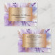 Remettez ces magnifiques cartes de visite "Charming Lavender" à vos clients, à votre famille et à vos amis et construisez votre réseau pour de nouveaux emplois. Vos clients seront impressionnés par votre apparence professionnelle. De magnifiques fleurs de lavande mélangées avec des accents de copperie créent un effet étonnant. Un effet métallique simulé est mélangé avec un design d'aquarelle lavande douce et la parties scintillant simulée le surplombe. Faites-les commander dès aujourd'hui et impressionnez vos clients afin qu'ils puissent réserver de nombreux jobs ! Changez l'image florale avec votre propre logo si vous préférez!