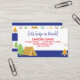 Partagez vos coordonnées avec vos amis et camarades cabines du camp avec ces cartes de contact amusantes pour le camp d'été ! Ajoutez votre propre touche personnalisée. Cliquez sur "personnaliser" pour modifier la police, la taille de l'image, etc. Transférez aussi ce design sur les produits de votre choix ! Visitez mon magasin de créateurs, PreppyPrint, pour coordonner les articles incluant les étiquettes de adresse et la papeterie.