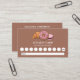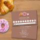 Carte de fidélité avec l'illustration d'un croissant, d'un beigne et d'un macaron sur un arrière - plan brun clair. Vous pouvez les distribuer à vos clients pour bâtir de la fidélité. Ceux-ci viennent avec 9 cercles vides pour un 10ème gratuit. Des informations entièrement personnalisables, y compris les heures d'ouverture, sont disponibles à l'arrière !
