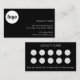 Logo simple et carte de fidélité personnalisée pour votre entreprise, avec des détails blancs sur un arrière - plan noir. Remplacez le logo, les détails de l'entreprise et l'offre de fidélité ou remise par votre propre pour customiser.