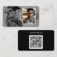 Créez des cartes de nom de diplômé personnalisées. L'avant de la carte présente un motif de grade d'aigle avec le nom souhaité, l'année de classe et la photo. Le dos de la carte contient un code QR que vous pouvez utiliser pour votre site Web. Couleurs noir et blanc. Utilisez le modèle pour personnaliser.