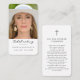 Dimensions cartes de visite : 3,5 po x 2,0 po. Cette simple carte de prière commémorative peut être donnée en souvenir lors d'une célébration de la vie ou d'un service funéraire ou envoyée en hommage spécial à ceux qui n'ont pas pu y assister. Personnalisez cette carte avec une photo préférée et votre choix de prière ou de poème au dos de la carte. Facile à customiser. Nos plus sincères condoléances à vous et à votre famille pendant cette période difficile.