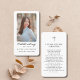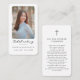 Dimensions cartes de visite : 3,5 po x 2,0 po. Cette simple carte de prière commémorative peut être donnée en souvenir lors d'une célébration de la vie ou d'un service funéraire ou envoyée en hommage spécial à ceux qui n'ont pas pu y assister. Personnalisez cette carte avec une photo préférée et votre choix de prière ou de poème au dos de la carte. Facile à customiser.