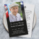 Thème de drapeau américain avec votre photo préférée dans un cadre. La typographie moderne et script est utilisée. Au verso de la carte, la prière peut être personnalisée.