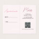 Le design allie fonctionnalité carte de visite et carte de rendez-vous et est un mélange somptueux de glamour et d'esthétique minimaliste, avec un arrière - plan rose vif qui respire le luxe. Il dispose d'une parties scintillant d'étoiles multicolores comme un confetti, lui donnant une touche girly et festive. Les illustrations noires centrales des extensions de cils mettent l'accent sur le thème de la beauté et de l'élégance. Le nom et la profession sont élégamment scénarisés dans le violet bordeaux, en résonance avec les maquilleurs, les professionnels du bar brow, les propriétaires de salon de beauté, les spécialistes de l'extension de foudre et les esthéticiens. La carte comporte des dispositions pour un code QR personnalisé et des icônes de médias sociaux personnalisées et votre adresse de société offrant un mélange harmonieux de fonctionnalité et de style. Les éléments de parties scintillant donnent un éclat subtil, rehaussant l'ambiance de barre de la carte, tout en gardant l'aspect général propre et épuré. Cette carte de rappel de rendez-vous est élégamment conçue pour gérer efficacement et rappeler à vos clients leurs prochains rendez-vous. Il présente un look élégant et professionnel, s'alignant parfaitement avec l'esthétique de votre marque. Vous pouvez personnaliser la carte avec vos propres icônes et texte, en vous assurant qu'elle représente parfaitement votre style et votre marque unique. Compact et élégant, cette carte sert de rappel pratique pour les clients, les gardant informés et engagés dans vos services. C'est un outil idéal pour améliorer les relations avec les clients et maintenir une image polie et organisée pour votre marque. Explorez les options de personnalisation pour faire de chaque carte un reflet de votre engagement envers la qualité et le service professionnel.