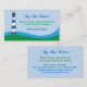 Ce carte de visite de regard moderne et propre est idéal pour une station de vacances de côté de maison de plage, de maison de hôtes ou de mer. Il comporte le dessin d'un phare sur un arrière - plan bleu-clair et deux écarte sur le fond. Conception contagieuse d'oeil avec un regard estival.