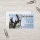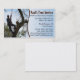 Un homme dans un arbre mort étant prêt pour commencer à le couper vers le bas. Un grand carte de visite pour tout service d'arbre, bois de chauffage ou affaires relatives.