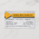 Caractéristiques de conception ce uniques un arrière - plan de cloison sèche de faux avec une flèche jaune qui enroule autour de l'avant et du dos de la carte. Il y a d'abondance de texte personnalisable pour que vous ajoutiez toute votre information d'affaires. Montré ici en tant qu'entreprise de construction, cette conception flexible est idéale pour presque n'importe quelles affaires.