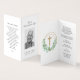Une photo et la célébration de la vie sur le front, la prière du Seigneur, ou toute prière, sur le dos et les détails de la vie de votre être aimé à l'intérieur avec une élégante couronne d'eucalyptus et croix d'or. Beau à inclure à un enterrement, service commémoratif, anniversaire de mort ou dans des notes de remerciement.