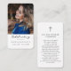 Dimensions cartes de visite : 3,5 po x 2,0 po. Cette simple carte de prière commémorative minimale peut être donnée en souvenir lors d'une célébration de la vie ou d'un service funéraire ou envoyée en hommage spécial à ceux qui n'ont pas pu y assister. Personnalisez cette carte avec une photo préférée et votre choix de prière ou de poème au dos de la carte. Facile à customiser.