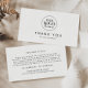Ce carte de remerciements d'entreprise de logo typographique chic fait l'emballage parfait pour un propriétaire de petite entreprise. Le design simple est composé d'une typographie minimaliste classique en noir et blanc, dans un style boho rustique. Personnalisable dans n'importe quelle couleur. Customisez avec votre logo.