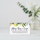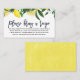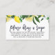 Carte De Recette De Fête de l'mariée Florale Au Citron En Taille Carte de visite.