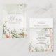 Visite Fleurs rose pâle baptême carte de souvenir vert