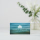 Cartes de visite horizontaux élégants pour des studios de yoga, des moniteurs de yoga, des spas ou des professionnels du bien-être. Cette carte présente une fleur de lotus blanc sur un arrière - plan subtil aux tons bleu et vert avec des vagues océaniques apaisantes.