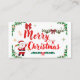 Envoyez la joie des vacances avec cette carte "Joyeux Noël", conçue pour apporter la joie à vos amis et votre famille. Doté de couleurs vives et de détails festifs, il saisit l'essence de la saison. Que vous aimiez les flocons de neige, les scènes d'hiver ou la typographie élégante, cette carte ne manquera pas de ravir. Imprimé sur des cartons durables, il est parfait pour les salutations personnelles et professionnelles. Personnalisable en différentes tailles, il fait un souvenir mémorable. Envoyez vos souhaits chaleureux avec style avec cette carte de charme!