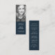 Moderne, simple poème funéraire mini signet pour célébrer la vie de votre être cher dans un style minimaliste moderne en bleu marine. Le programme peut facilement être personnalisé avec votre propre photo et texte pour créer un hommage spécial pour les funérailles, le mémorial ou la célébration de la vie de votre être aimé. Le design y compris un poème ou une prière personnalisés. L'image montrée n'est à des fins d'illustration que pour être remplacée par votre propre photo. L'image de l'espace réservé est celle d'une belle femme aux cheveux blonds ondulés portant un haut taché et est tournée en noir et blanc monochrome. Si vous avez besoin d'aide pour personnaliser ce produit, veuillez me contacter en utilisant le bouton de message et je serai heureux de vous aider.