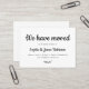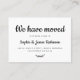 Simple Minimal "We've Moved" Calligraphy Script Nouveau Home Moving Faire-part insert carte de boîtier. Faites connaître votre nouvelle adresse à vos amis et à votre famille en utilisant cette carte minimaliste élégante joli texte en caractères lettrés typographie (ou calligraphie) "We Have Moved" texte sur le devant et sur le dos "Please keep in touch!" texte en noir et blanc. Facile à customiser avec vos propres détails.