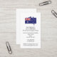 Carte de visite patriotique AUSTRALIEN moderne, montrant la conception combinée du plan et du drapeau de l'AUSTRALIE. L'image du drapeau est PERSONNALISABLE pour que vous puissiez la remplacer par votre propre photo ou logo, et personnaliser avec votre nom et vos coordonnées. Au verso, vous avez la possibilité d'ajouter votre propre texte ou de supprimer.