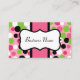 Des pois roses, calcaires et noirs décorent cette carte de visite élégante. Customisez la carte pour répondre à vos besoins, ajouter ou supprimer des informations etc...Utilisez ces cartes de visite amusants pour un business, coiffeur, boutique, boulangerie, tuteur, styliste, cosmétologue, maquilleur, designer, salon de ongles, salon de coiffure, spa, boutique, etc... Le design est de l'art original.