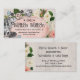 Chic rose pâle couture ou couture couturière carte de visite ou de grandes étiquettes cadeaux ou des étiquettes suspendues. Bobines vintages, boutons, fraises et arrière - plan de style victorien à fleurs et burlap sur vert clair pour couture et couture.