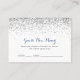 Ce confetti argenté devine combien de cartes de jeu est parfait pour une douche ou un baby shower rustique nuptiale. Le design sobre et élégant présente des confettis argentés et une typographie classique en bleu et noir.
