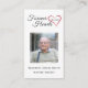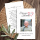 Carte de prière commémorative de la Sympathie funéraire. Carte de prière avec une photo de la personne dont on se souvient, le titre sympathique "Forever in our Hearts", leur nom, et les dates de naissance/mort. Cette carte commémorative peut être remise à un ami ou à un membre de la famille en tant que gardien pour une célébration de la Fête de la Vie, la célébration de la Fête du Souvenir et le service funéraire, ou envoyée comme hommage spécial à ceux qui ne pouvaient pas y assister. Cette carte peut être personnalisée avec une photo préférée et votre choix de prière ou de poème. La photographie est à des fins d'illustration et peut être changée en une de vos propres. Vous pouvez le changer en un autre verset, poème ou prière si vous le souhaitez.