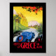 Vintage French language Art Deco travel poster promoting Greece as a tourist destination by car.