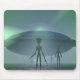 Aliens with a saucer-shaped spaceship