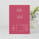 This modern minimalist style wedding invitation features beautiful script typography and simple serif fonts with a viva magenta background. It's perfect for any wedding theme. Replace the photo and QR code with yours to the back of the invite to give your invitation a nice personal touch.