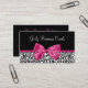 A trendy black and white leopard print boutique business card with a vivacious hot pink ribbon tied into a girly bow. Personalize this cute animal pattern design by adding the name of your fashion boutique. Flat printed image, not actual bow.