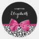 Vivacious Dark Pink Ribbon Leopard Print With Name Classic Round Sticker