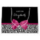 A trendy black and white leopard print large size gift bag with a vivacious dark pink ribbon tied into a cute girly bow. Personalize this chic and stylish animal pattern design by adding the name of your teen girl. Flat printed image, not actual ribbon.