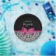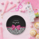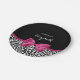 Trendy black and white leopard print paper plates with a vivacious dark pink ribbon tied into a cute girly bow. Personalize this chic and stylish animal pattern design by adding the name of your teen party girl. Flat printed image, NOT actual ribbon.