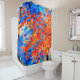 Orange and yellow leaves against blue background. Colourful and vivid autum scene. Season greetings. Shower curtain to decorate your bathroom for fun and good mood