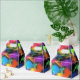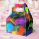 A dreamy abstract in vivid shades of yellow, green, pink, purple, blue, turquoise, orange, black and more adorn these fun favour boxes.