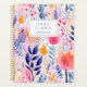 Personnalisez ce planificateur fantaisiste avec votre nom en italique bleu marine encadré par un rectangle blanc, sur un arrière - plan audacieux et coloré d'éléments floraux et botaniques peints à la main dans les tons bleu, rose et orange.