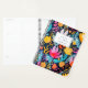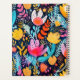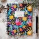 Personnalisez ce planificateur fantaisiste avec votre nom en italique bleu foncé encadré par un rectangle blanc, sur un motif arrière - plan audacieux et coloré d'éléments floraux et botaniques peints à la main dans des tons turquoise, rose et jaune.