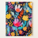Personnalisez ce planificateur fantaisiste avec votre nom en italique bleu foncé encadré par un rectangle blanc, sur un motif arrière - plan audacieux et coloré d'éléments floraux et botaniques peints à la main dans des tons turquoise, rose et jaune.
