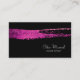 Here's a simple, modern business card with a big impact! It features your name and title at the lower right front corner. At the top is a broad, glittery bright pink violet paint stroke. The image and text are placed on a dramatic black background. The back of the card is also black, with several fields for you to customize or delete, as you prefer.