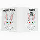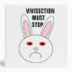 This Avery binder features the sad face of a white rabbit. This rabbit has a big frown on its face because it is a lab rabbit that has had cosmetics tested on it. The whites of its eyes are red and swollen. The design has been created to bring to attention the unnecessary suffering caused by the testing of cosmetics on animals. The rabbit is on the front and back of the binder. The bold, black text on the front of the binder, above the ears of the rabbit, says "Vivisection must stop" and the text on the back of the binder says "we owe it to them". If you agree then this is the binder for you.