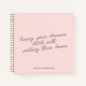 Un journal minimaliste rose vif avec écriture manuscrite décontractée informelle citant "vivre ses rêves commence par les écrire" associé à votre nom dans la typographie moderne qui peut facilement être personnalisée.