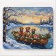 Bring loyal, striking red-gold charm to your holiday season with this beautiful Vizsla Christmas design! This magical scene features three handsome, lean Vizslas sitting attentively in a cozy wooden boat, gently floating on a serene snowy lake at sunset. The boat is beautifully adorned with glowing Christmas string lights and fragrant pine garlands, while the dogs wear festive scarves. They are surrounded by colorful wrapped presents and cheerful holly branches. Soft snowflakes gently fall, and the shimmering reflection of the lights on the water creates a truly magical winter holiday atmosphere. This design is a perfect Christmas gift for any Vizsla owner, dog lover, or admirer of festive and devoted sporting dog art, capturing the serene joy of the season.
