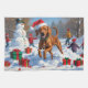 A graceful Vizsla runs happily through the snowy winter scene, wearing a festive red Christmas hat. This charming design highlights the breed’s sleek coat, athletic build, and affectionate personality while capturing the warmth and joy of the holiday season. A delightful winter moment full of festive cheer.